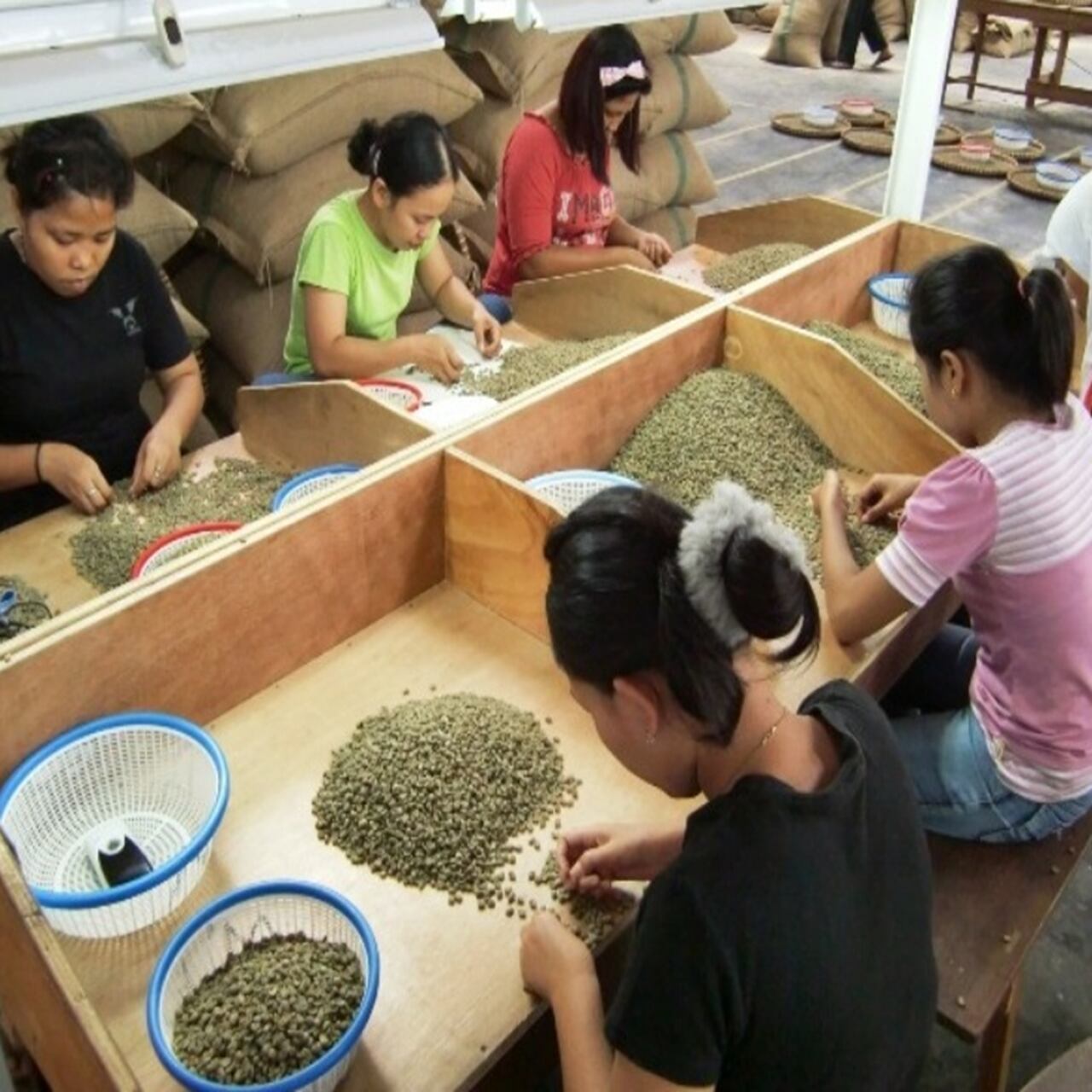 スマトラ式(インドネシア独自の精製方法。乾燥させる工程が他の産地では1回なのに対し、2回乾燥させます。)で乾燥させたコーヒー豆です。