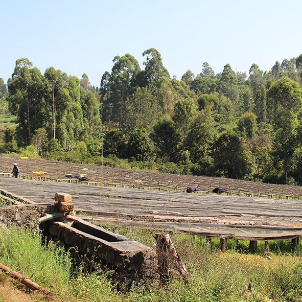 このコーヒーは、ケニア式のウォッシュ精製で仕上げられています。コーヒーチェリーを果肉除去した後、カナルと呼ばれる水路を使って綺麗に洗浄し、アフリカンベッドで7日から15日間かけて乾燥させています。